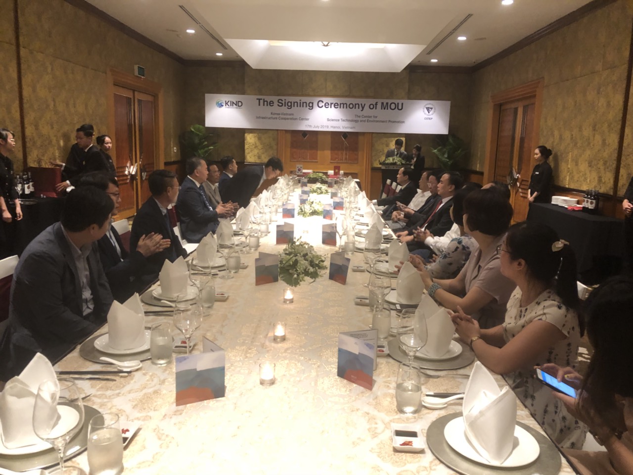 Sau buổi lễ đón tiếp, Tại Khách sạn Melia Hà Nội, CSTEP tiến hành ký Biên bản ghi nhớ (MoU) với Trung tâm Hợp tác Hạ tầng Hàn Quốc-Việt Nam (sau đây gọi tắt là “Trung tâm Hạ tầng K-V”) của Cơ quan Phát triển Hạ tầng và Đô thị Hàn Quốc (sau đây gọi là “KIND”) thuộc Bộ Đất đai, Hạ tầng và Giao thông Hàn Quốc (gọi tắt là “MOLIT”) thông qua Trung tâm hợp tác Hạ tầng Hàn Quốc- Việt Nam) nhằm triển khai và tăng cường hợp tác, thúc đẩy các dự án Đối tác công tư (PPP) tại Việt Nam trên cơ sở bình đẳng, công bằng và hiểu biết lẫn nhau.