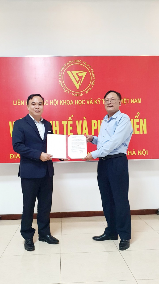 Ban lãnh đạo Công đoàn và Đoàn Thanh Niên Liên hiệp các Hội Khoa học và Kỹ thuật Việt Nam (VUSTA) trao Quyết định công nhận Ban Chấp hành Công đoàn cơ sở và Quyết định Chuẩn y kết quả Đại hội cho Chi đoàn Viện Kinh tế và Phát triển